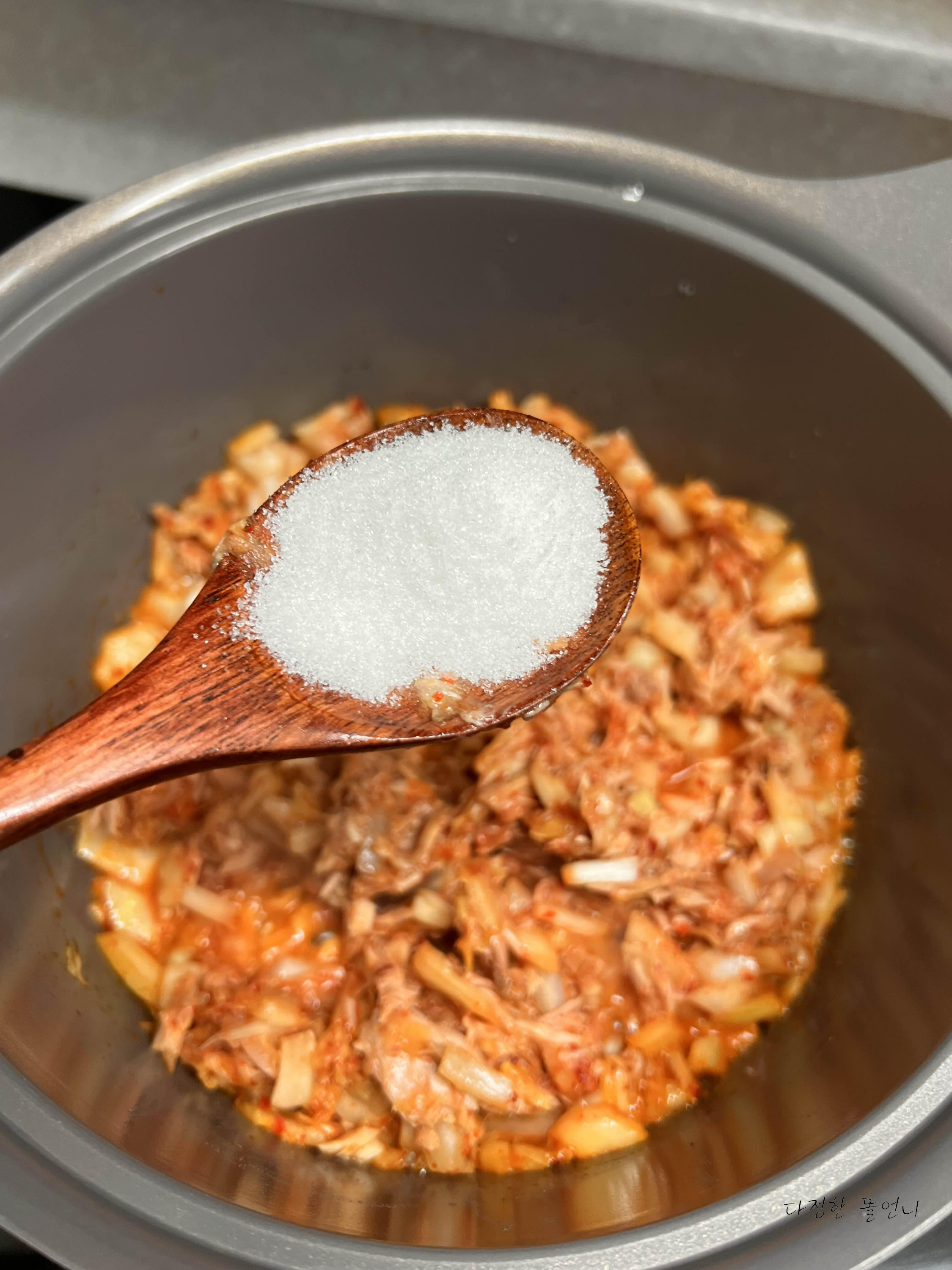참치기름과 양파 김치가 함께 코팅이 되며 볶아져서 감칠맛이 살아나요
