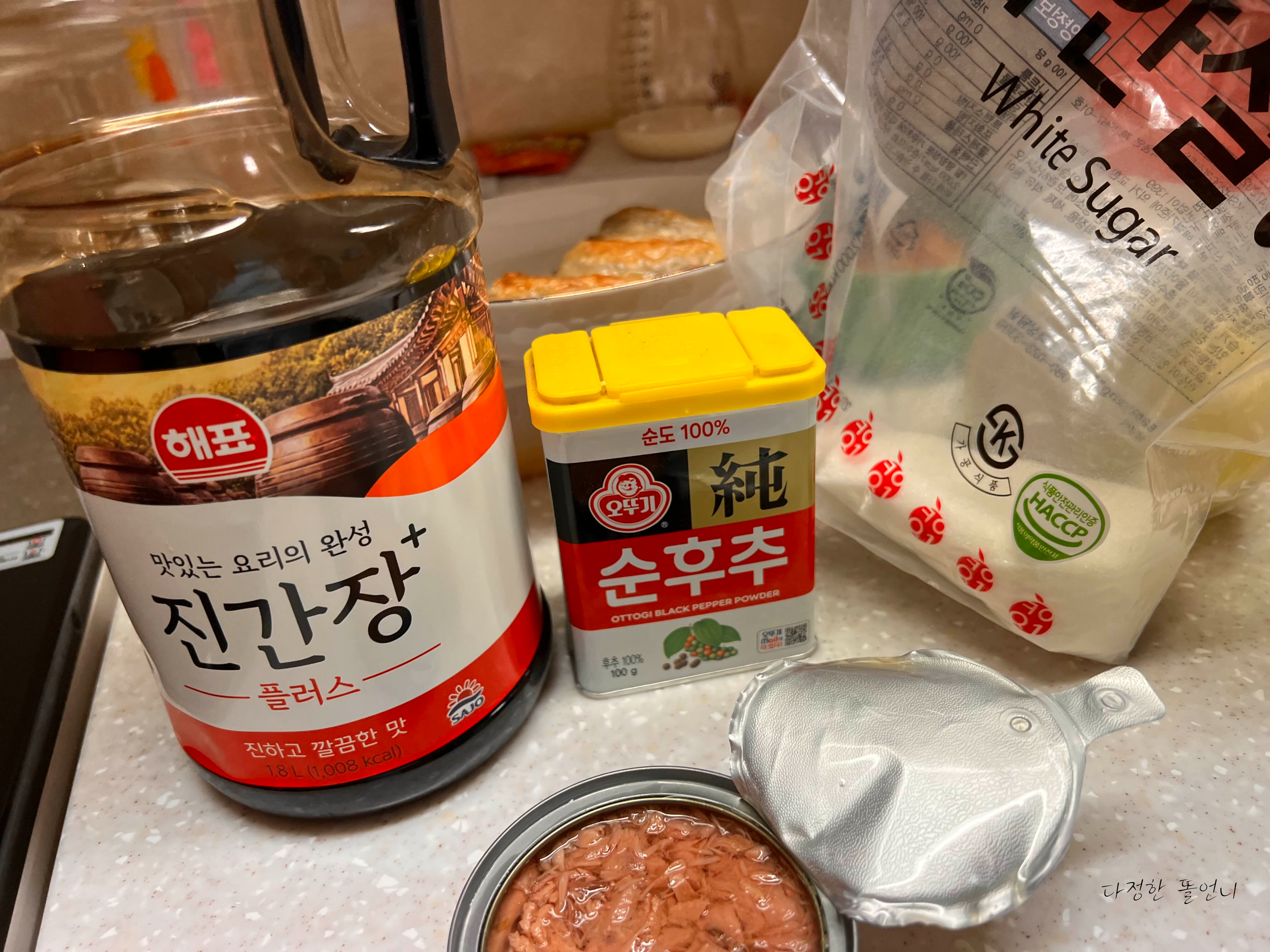 한식의 가장 기본재료인 간장, 설탈, 후추 이렇게 준비했어요
