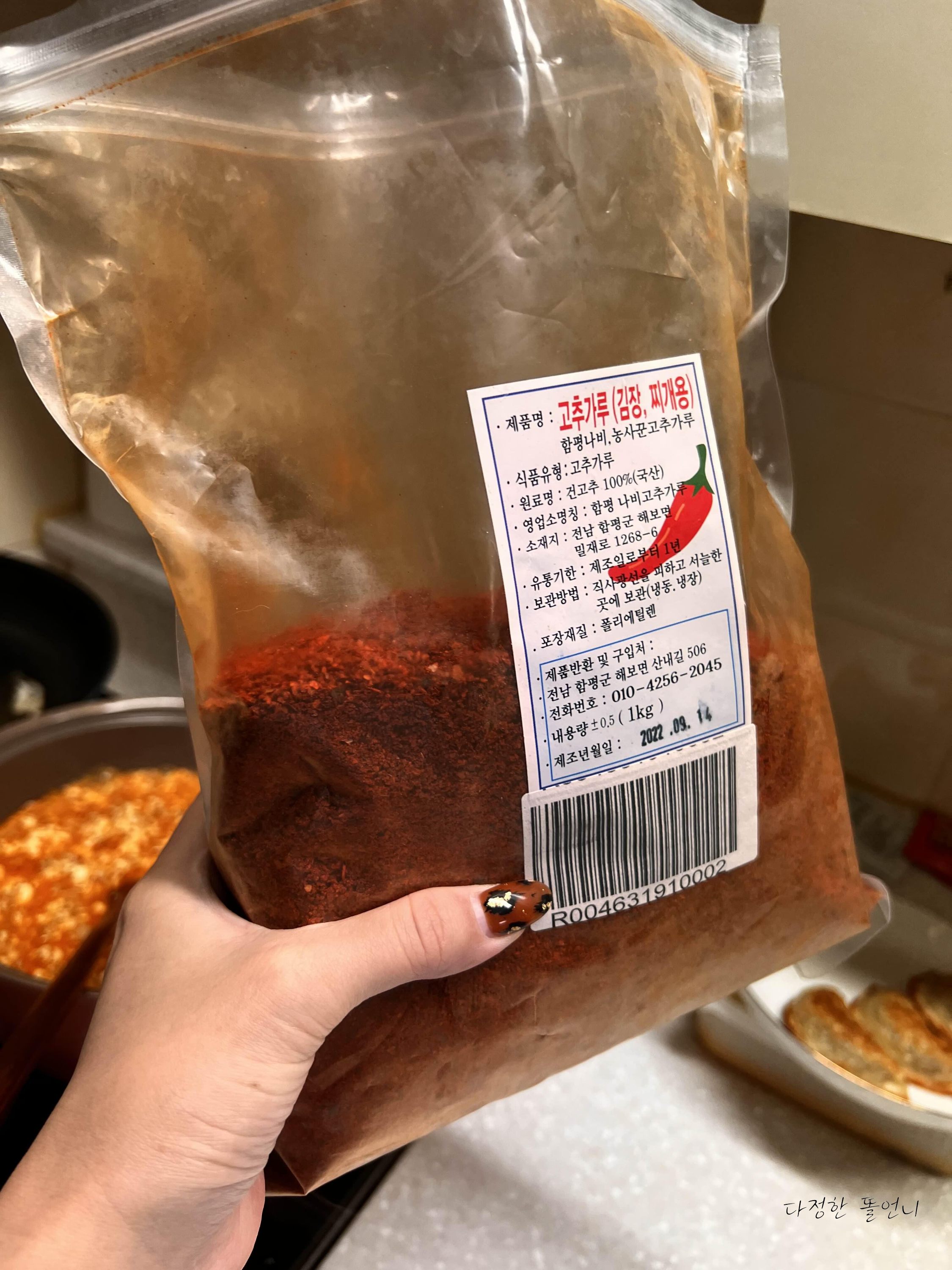 그리고 물기가 어느정도 있는 상태이니 고춧가루 1 아빠숟가락을 넣어주세요