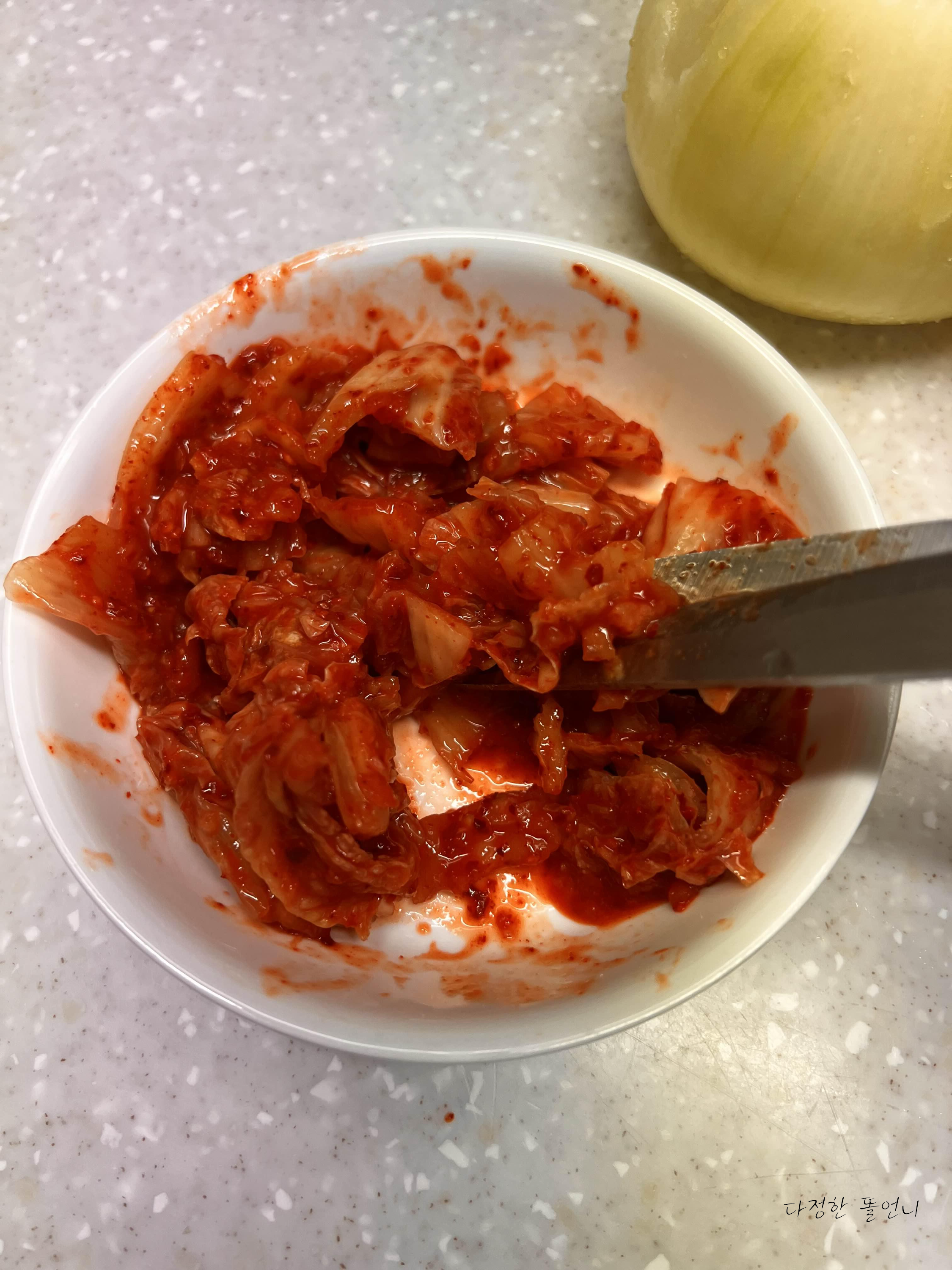 다져버린 마늘을 넣어도 좋은데 김치에 이미 들어가 있어서