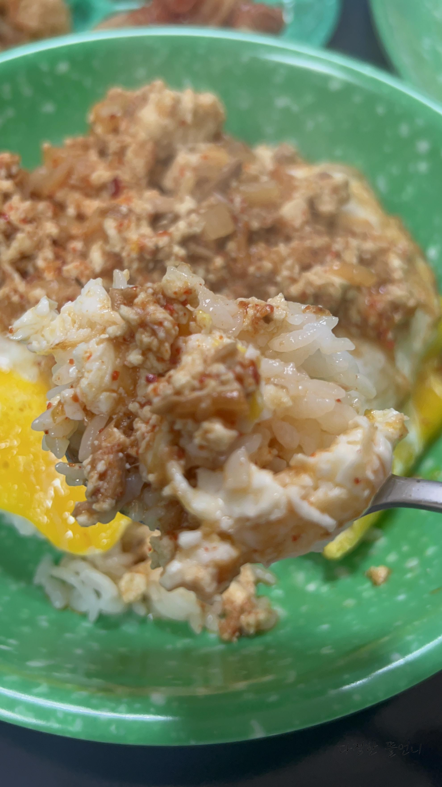 그런데 김치가 들어가있어서 김치볶음밥 같은 느낌도 나는 그런 두부김치장이예요!