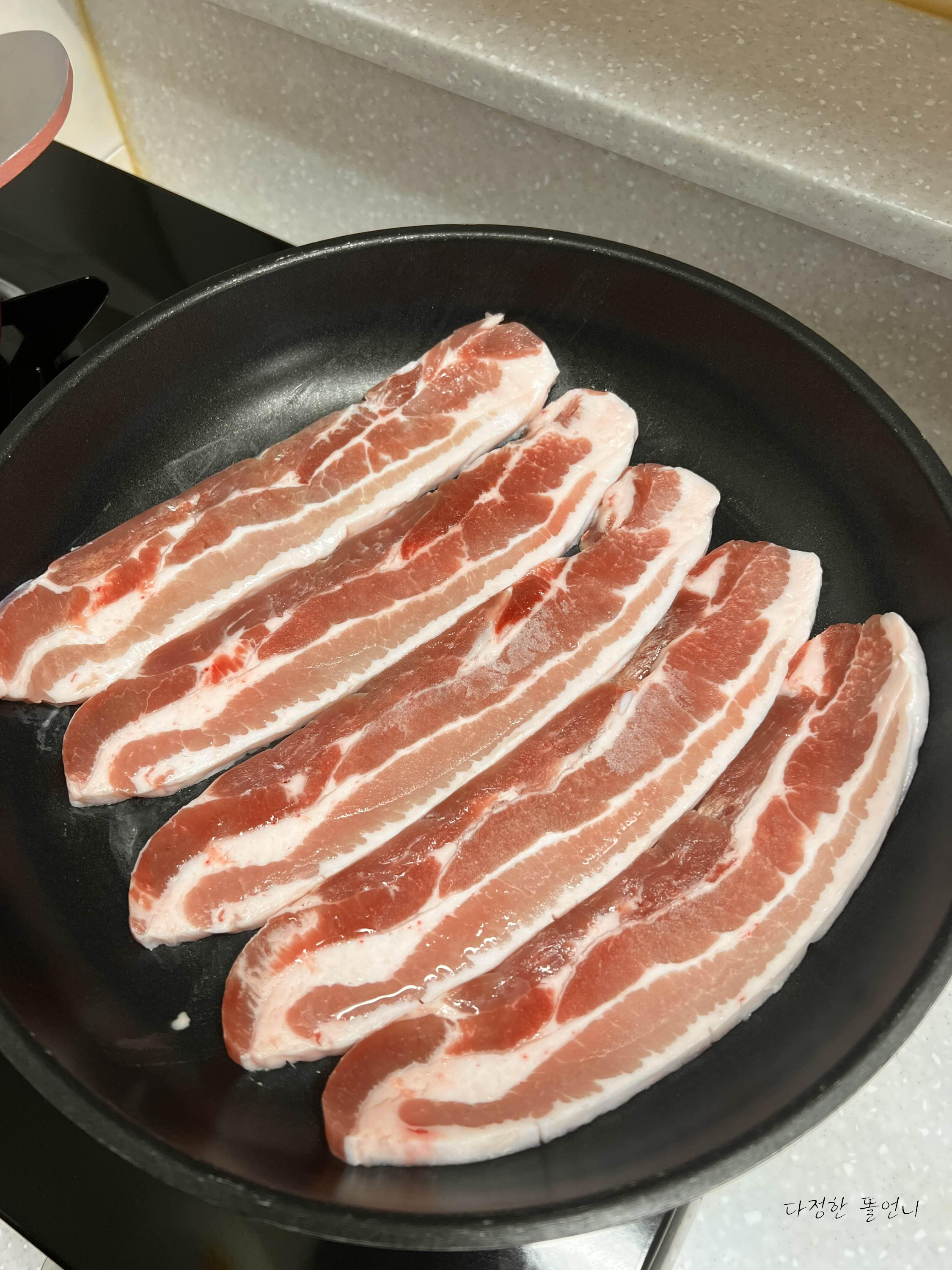 김치찌개와 함께 냉동실에 보관해둔 삼겹살을 꺼내서 같이 구웠어요