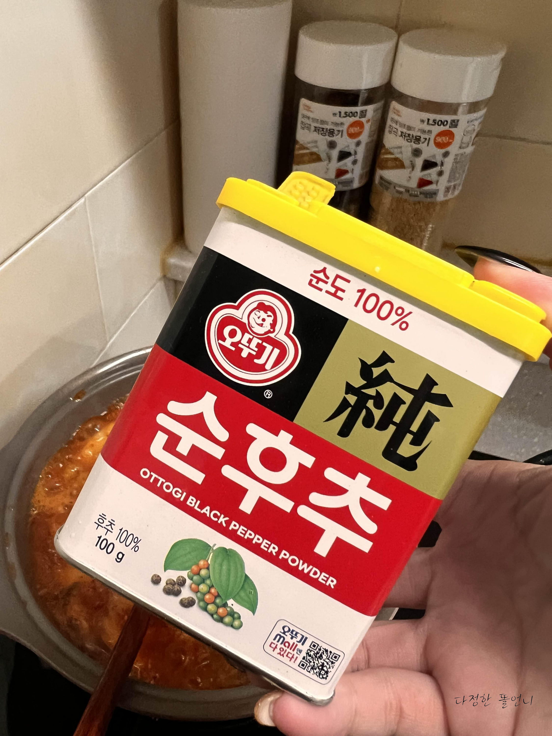 후추를 후추추 하고 넣은 뒤 설탕을 1 아빠 숟가락 더 넣으세요