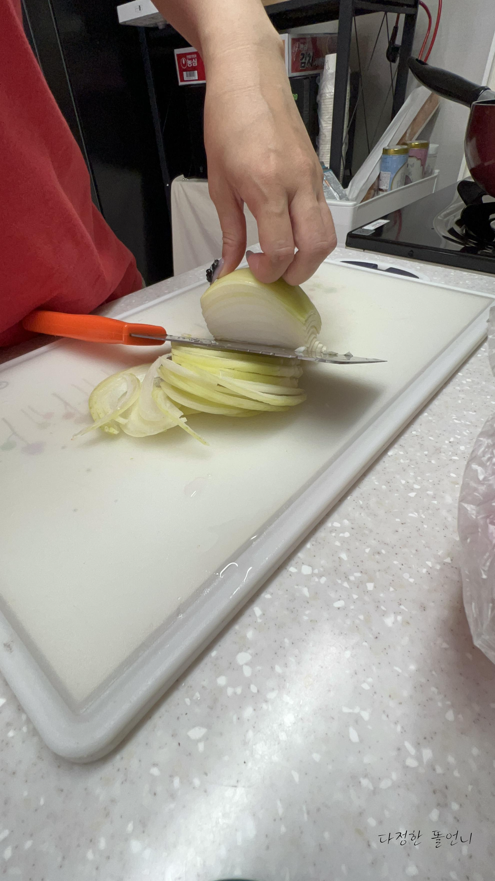 암튼 애호박이랑 양파를 챙챙 썰어주세요 손조심하시구요!