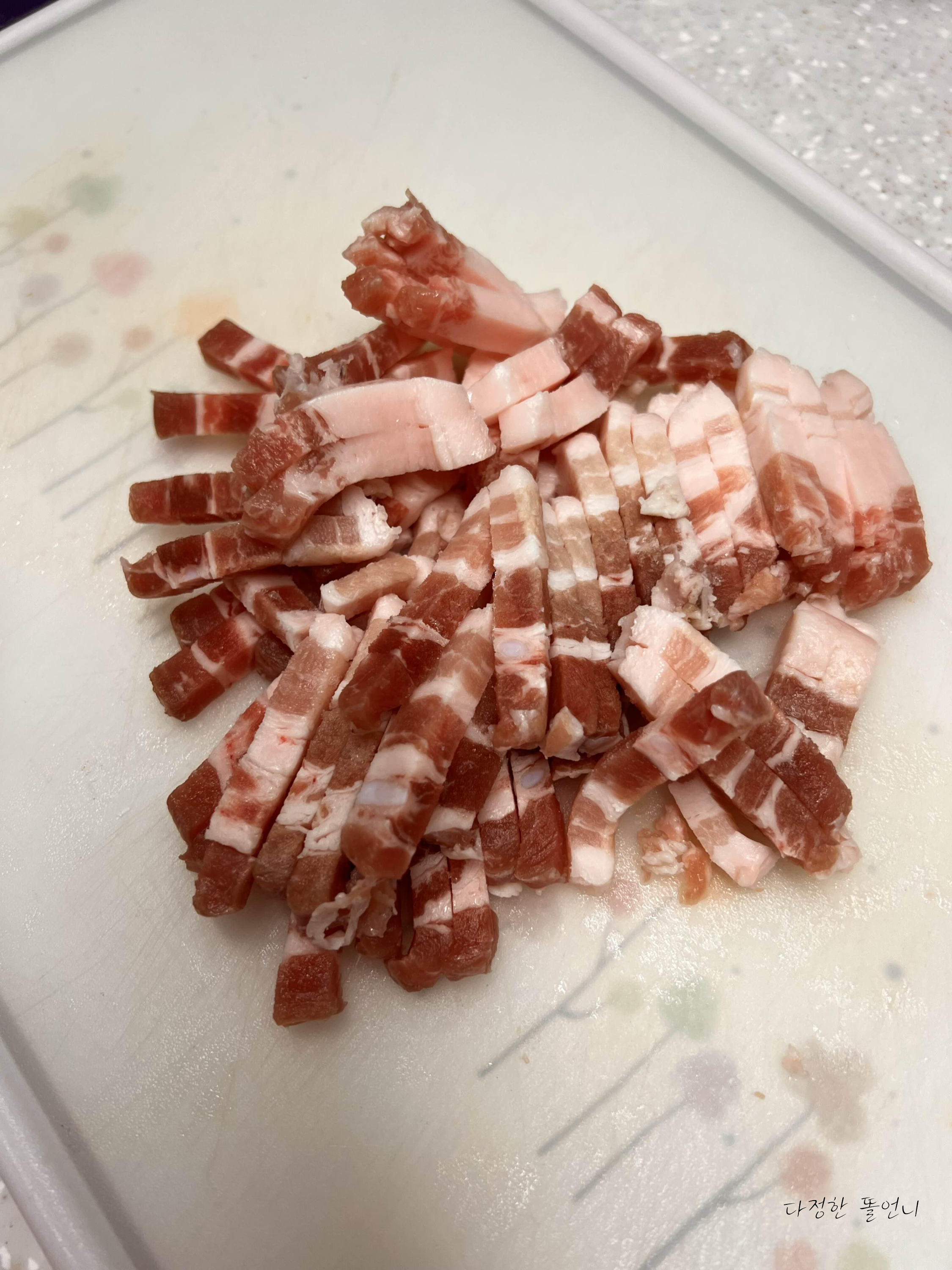 그리고 삼겹살도 완전 다 해동되기 전에 창창 썰어주세요