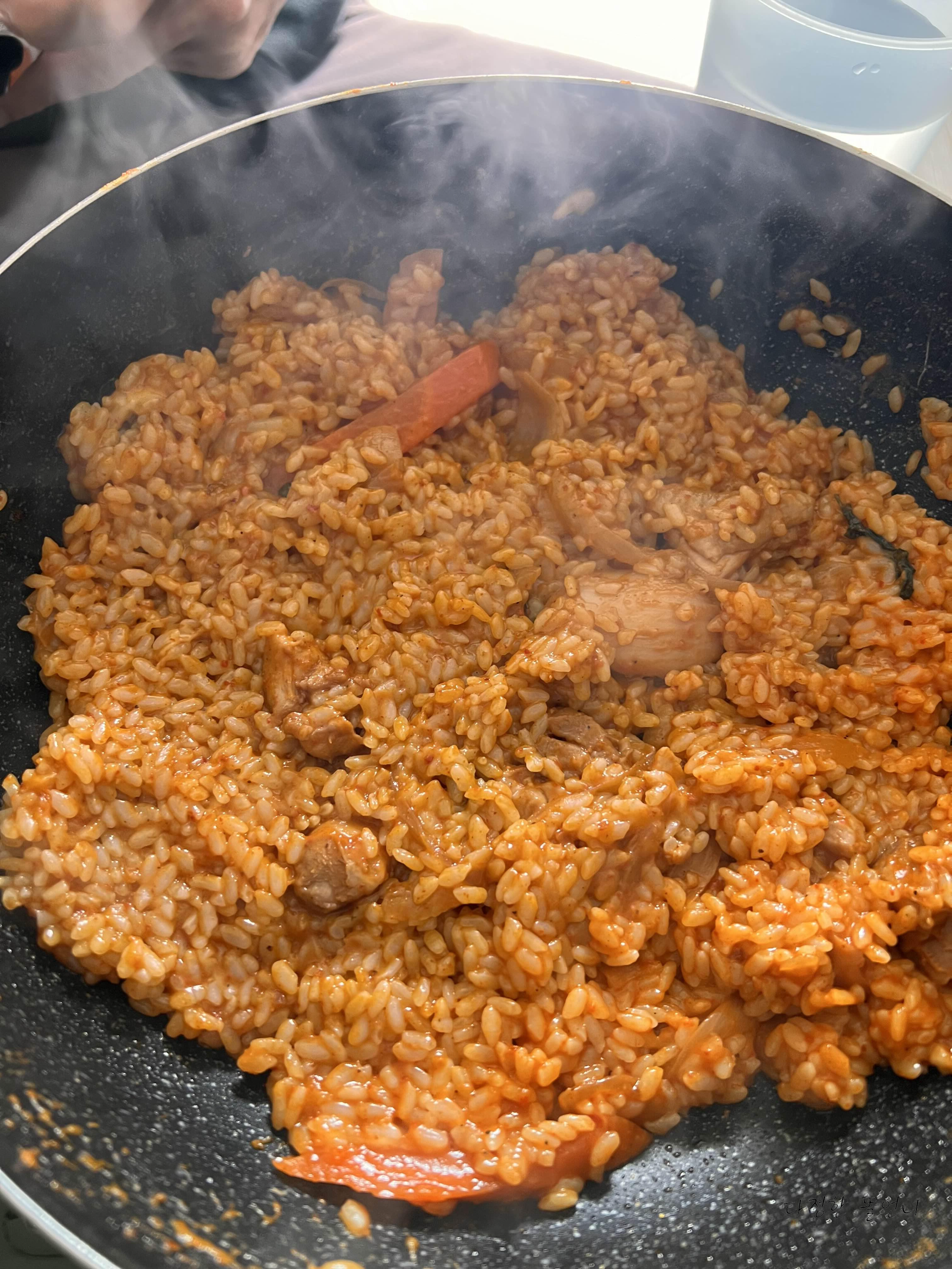 그리고 팬에 약한불로 살짝 눌렀다가 드시면 누른 볶음밥을 즐길수있어요!